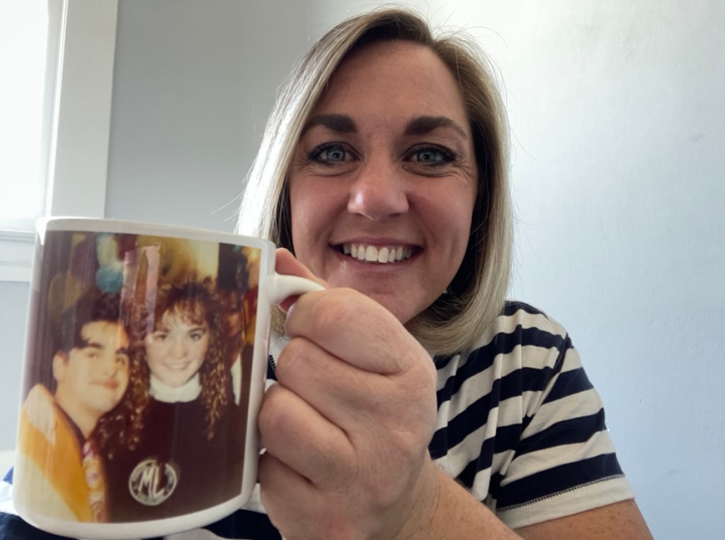 I did get to meet my pre-teen crush at the mall, and I took a photo with him that my mom and dad had printed on a mug for me that Christmas. I still have that mug to this day! My husband and I danced at our wedding to the song he sang to me in the car on our first date 30 years ago. And with a humble heart I listen for the song God is singing over me right now.